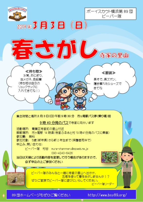 | 10 | 2019.2.13 | 春さがし体験募集(2019.3.3)チラシ掲載 | ビーバー隊 |
