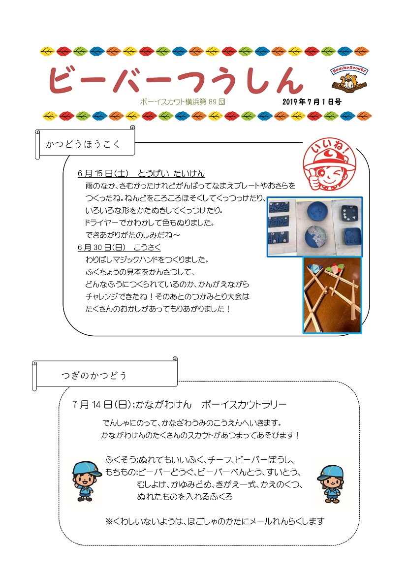 | 14 | 2019.7.8 | ビーバー通信(2019.7.1)掲載しました。 表 裏 | ビーバー隊 |