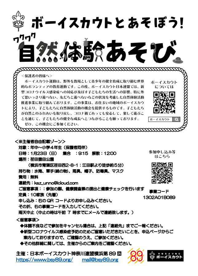 | 25 | 2021.12.3 | 体験募集(2022.1.23)チラシ掲載 表 裏 | ビーバー隊・カブ隊 |