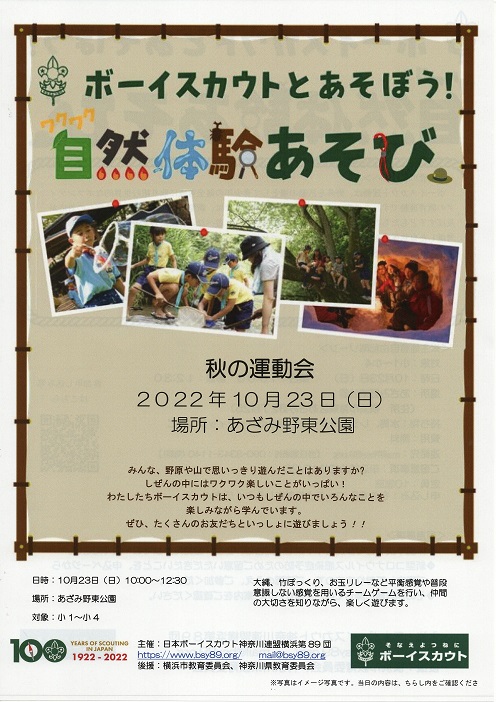 | 28 | 2022.10.17 | 体験募集 秋の運動会)20212.10.23) 表 裏 | ビーバー隊 カブ隊 |