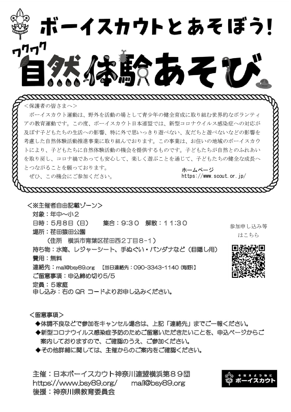 | 26 | 2022.4.26 | 体験募集 五感ラリー(2022.5.8)チラシ掲載 表 裏 | ビーバー隊 |