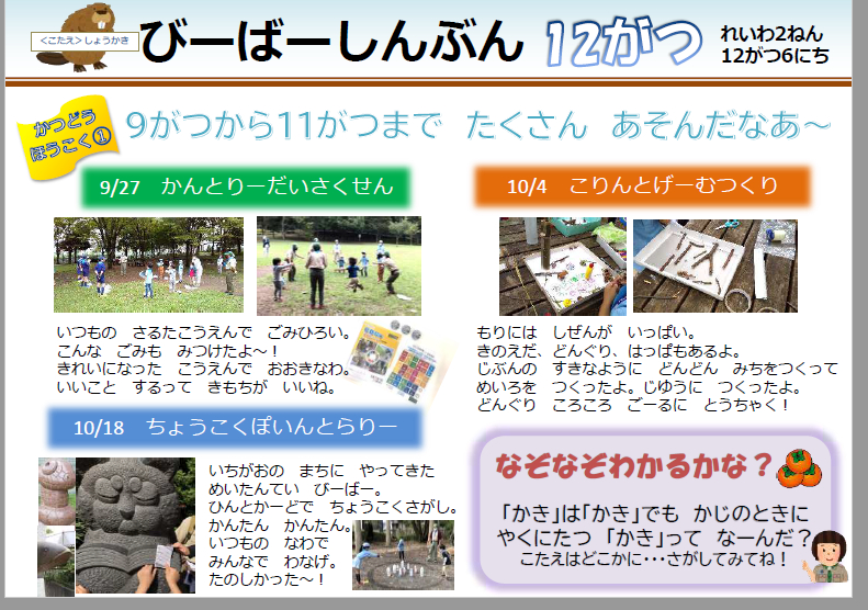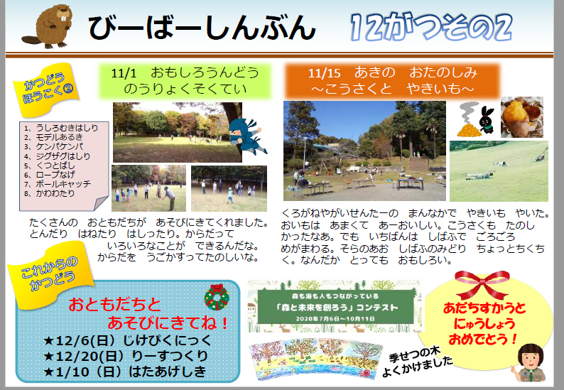 | 18 | 2020.12.10 | ビーバー通信(2020.12)掲載しました。 表 裏 | ビーバー隊 |
