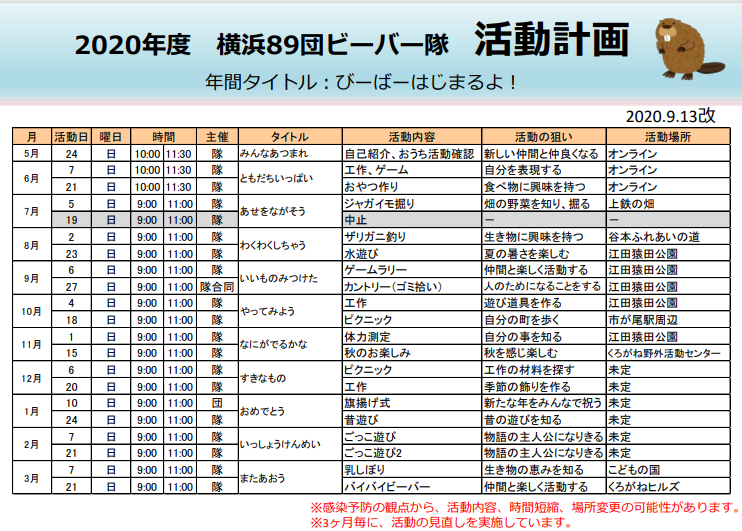 | 15 | 2020.6.17 | ビーバー通信(2020.6)掲載しました。年間計画 | ビーバー隊 |